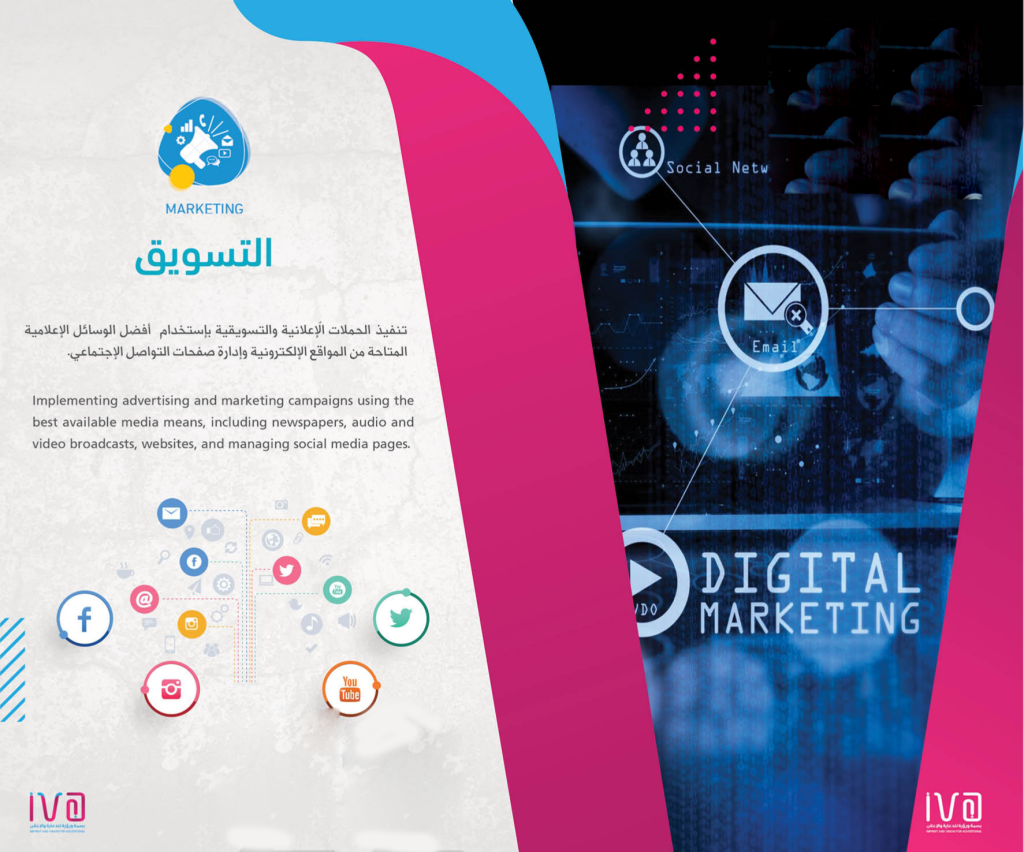 تنفيذ الحملات الإعلانية والتسويقية باستخدام أفضل الوسائل الإعلامية المتاحة من المواقع الإلكترونية وإدارة صفحات التواصل الاجتماعي